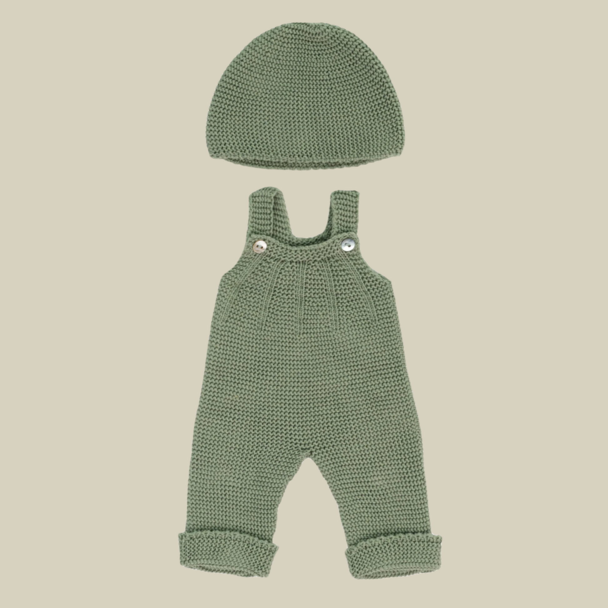 Salopette tricotée + bonnet pour poupées (poupées de 38 cm)