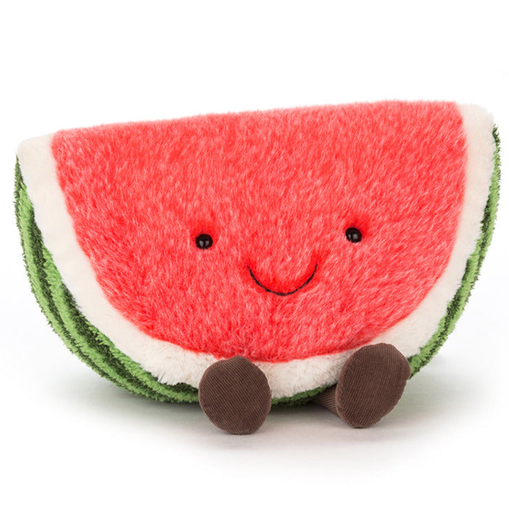 Amuseable Watermelon Large is pink, green and cuddly all over! A slice of sheer silly, full of Jellycat goodness and fluffy fun! Buddies come in all shapes and sizes, and there ain't no cuddle like a watermelon cuddle. Cheery, cheeky and merry with mischief! For tons of fruity fun, grab Amuseable Watermelon. Just the thing for a quirky birthday or just because gift.