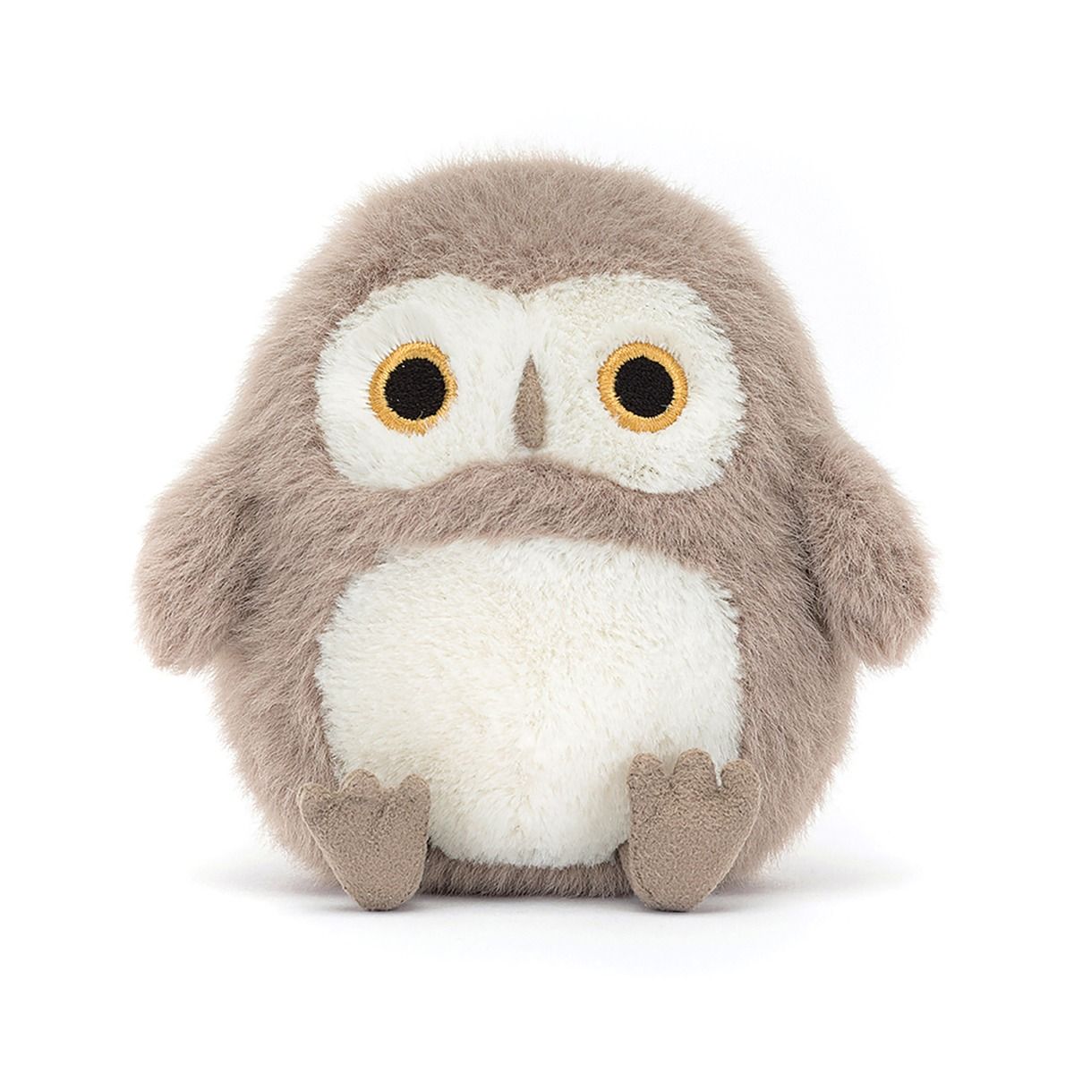 Super soft in textured brown fur, it's adorable little Jellycat Barn Owling! This baby bird has bright stitched eyes, tiny suedette feet and beak and a fluffy cream tummy. Those little wings aren't very good for flying, but the best for cuddles!