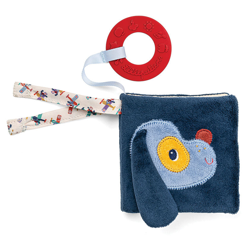 Discover endless fun and development with the Jules dog soft playbook. Packed with sensory textures, sounds, and hidden animal surprises, it stimulates fine motor skills, hand-eye coordination, and early problem-solving. The attached teething ring offers comfort, while the book ties easily to a cot, pram, or car seat for on-the-go learning and imagination. A perfect blend of play and developmental growth and one of the many items available from the Lilliputiens Jules dog collection.