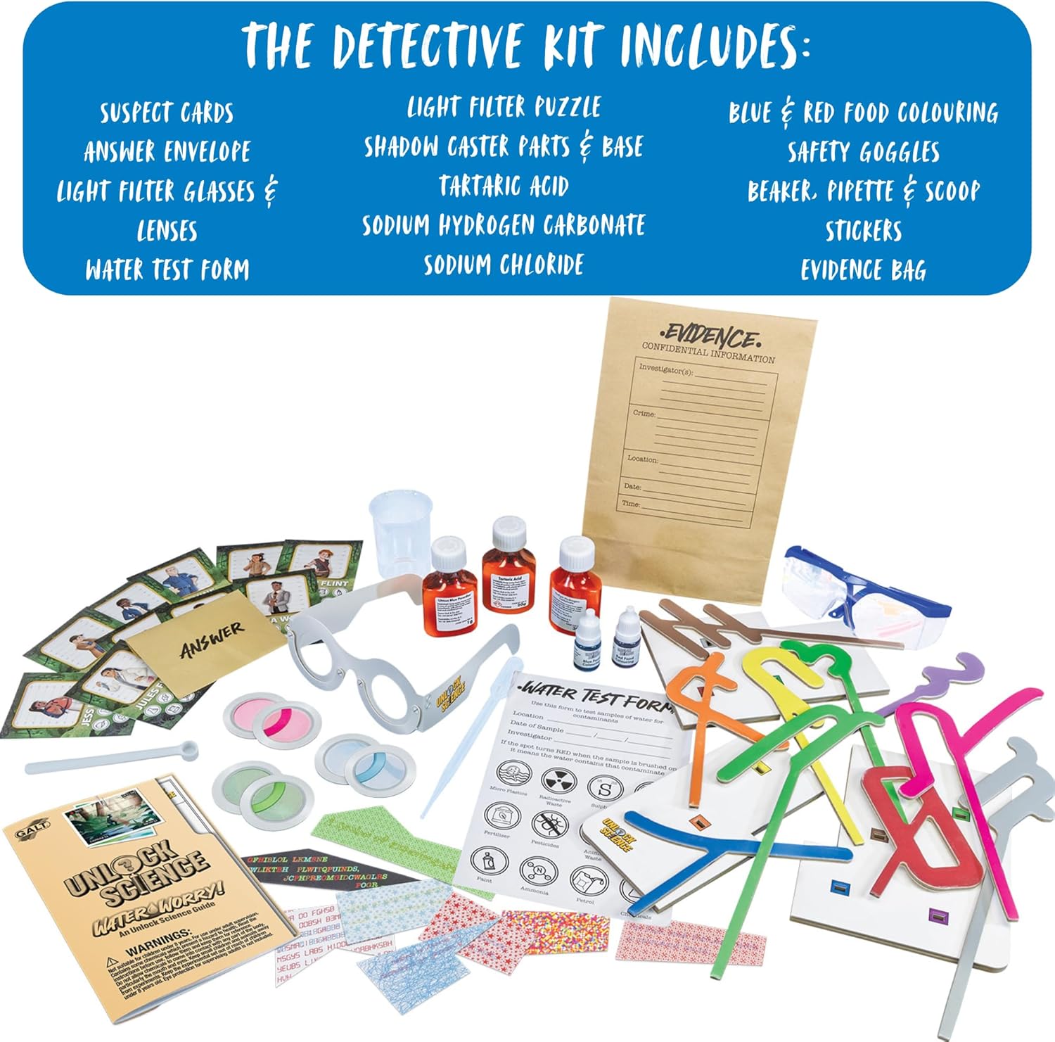 - CRACK THE CASE: With the unique science kit, analyse suspects, decipher puzzles and eliminate culprits using scientific experiments; you can identify the perpetrator and save the river from harmful waste