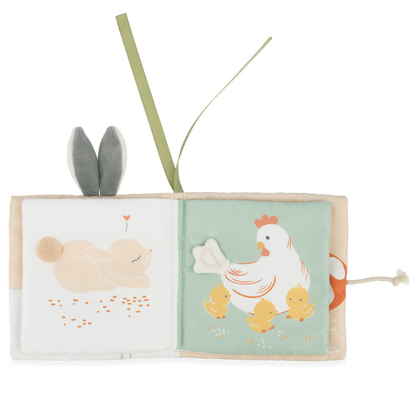 Ignite baby's love for story time with the Les Amis Donkey Soft Book by Kaloo. This interactive, tactile picture book features a lovable detachable plush donkey, perfect for bringing the farm story to life. As you explore the farm on each page, you can animate the donkey, creating cherished memories along the way. Each page offers a variety of tactile stimulations and fun activities to encourage exploration, including lift-the-flap surprises. The donkey can also be used as a mini comforter or to enhance the storytime experience. With ribbon ties, it can be easily attached to a pram or car seat. Made from micro-velvet and recycled polyester, it is machine washable on a delicate cycle for easy care. Presented in an open box, it makes a gift gift for babies.