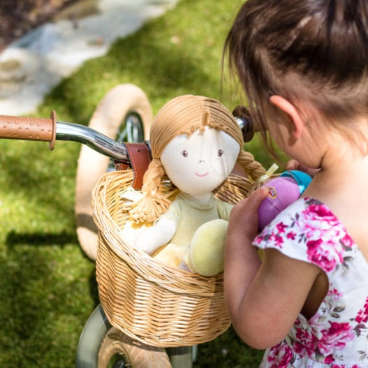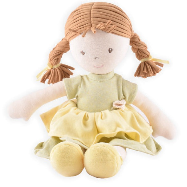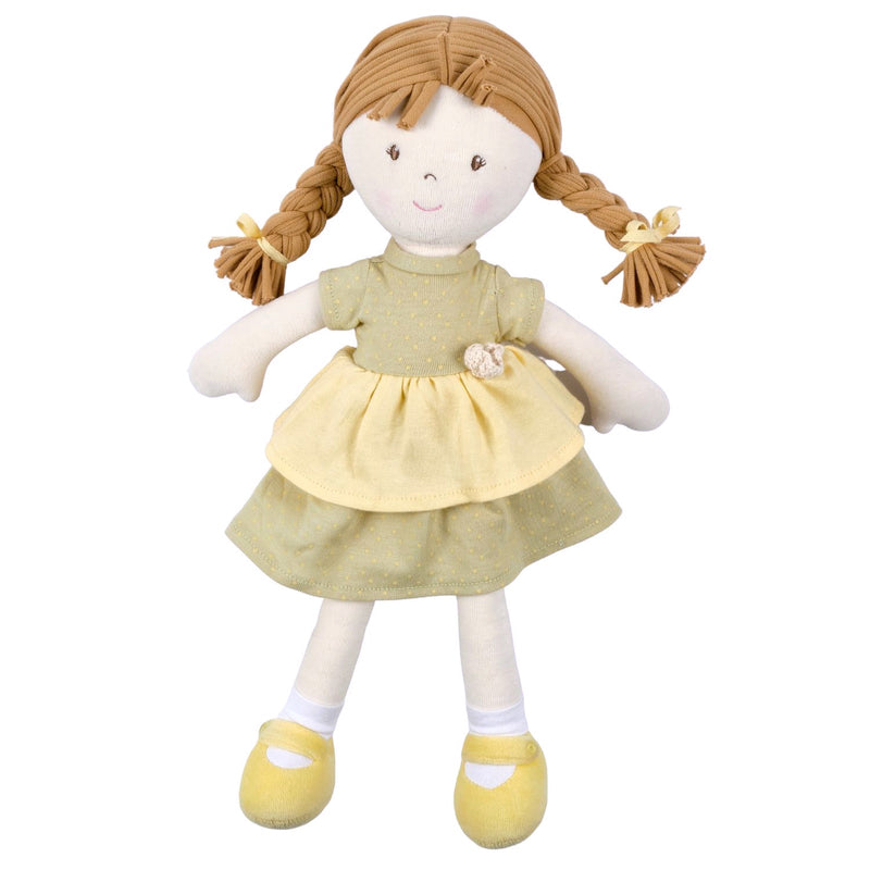 这款甜美的纯天然 100% 棉质 Honey 娃娃头部和身体柔软,非常适合小小拥抱。她穿着漂亮的夏装,棕色头发上戴着蝴蝶结。(她的衣服可以脱掉。鞋子不能脱掉)。Honey 身长约 38 厘米,重量轻,非常适合孩子的第一个娃娃。