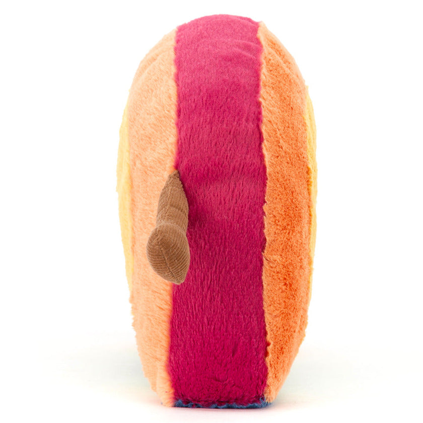有趣的彩虹爱每个人,欢迎所有人来拥抱它!这只柔软的彩虹有着桃色、黄色和青绿色的淡色条纹、弯曲的手臂和傻傻的微笑,照亮了每一天。一只充满骄傲的娃娃!