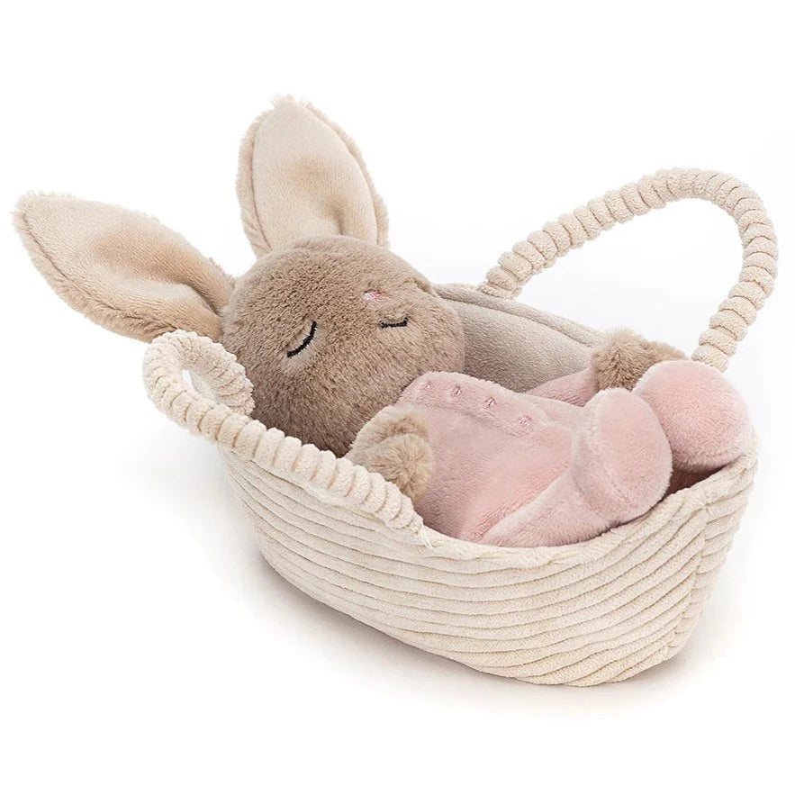 嘘。你需要轻轻地踮起脚尖,轻声低语,这样你就不会吵醒摇篮兔宝宝了!这个来自 Jellycat 的小宝贝长着活泼的耳朵、平静的脸庞和一身花瓣粉色的连体衣,真是个珍贵的宝贝。我们的小兔子宝宝蜷缩在一个可爱的奶油色灯芯绒提篮里,可以抱起来拥抱。非常适合依偎和发挥想象力。适合所有年龄段的孩子。