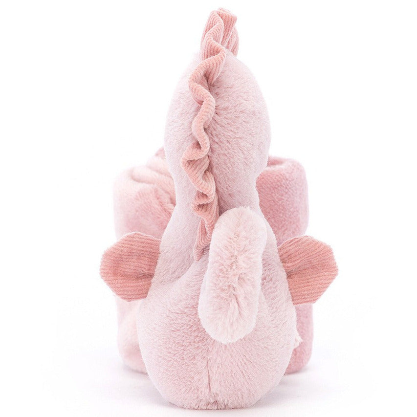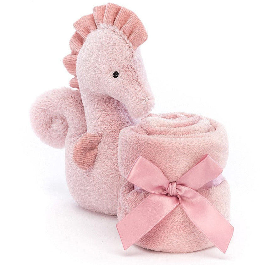Jellycat 的 Sienna 海马安抚奶嘴卷得紧紧的,周围系着缎带,是送给新生儿的完美礼物。当安抚奶嘴解开时,Sienna 不会松手,宝宝也不会!